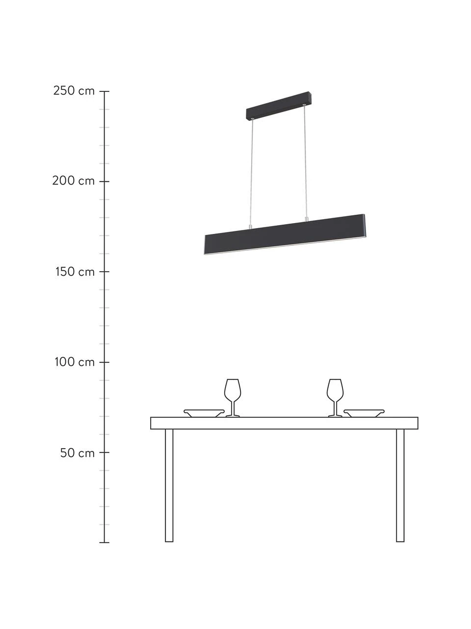 Abhängung von der Decke: höhenverstellbar von H 20 cm bis H 100 cm