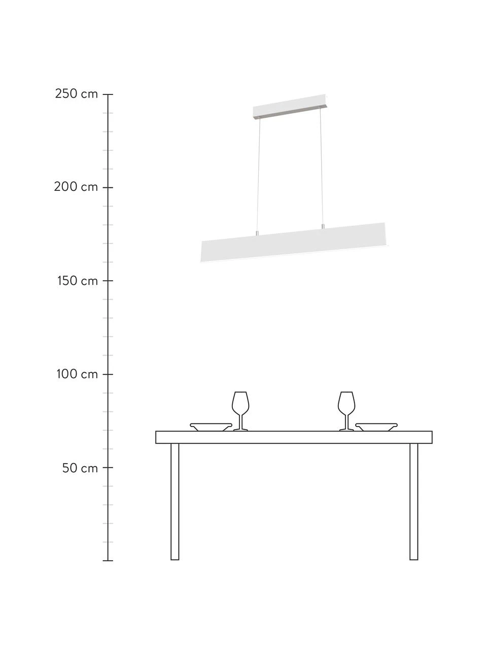 Abhängung von der Decke: höhenverstellbar von H 20 cm bis H 100 cm