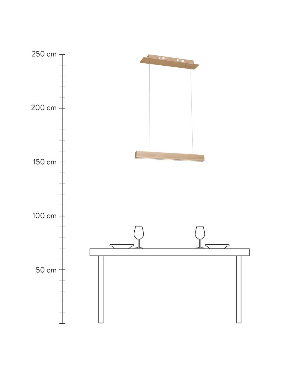 Abhängung von der Decke: höhenverstellbar von H 50 cm bis H 90 cm