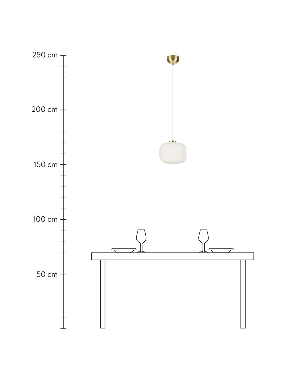 Abhängung von der Decke: höhenverstellbar bis max. H 172 cm