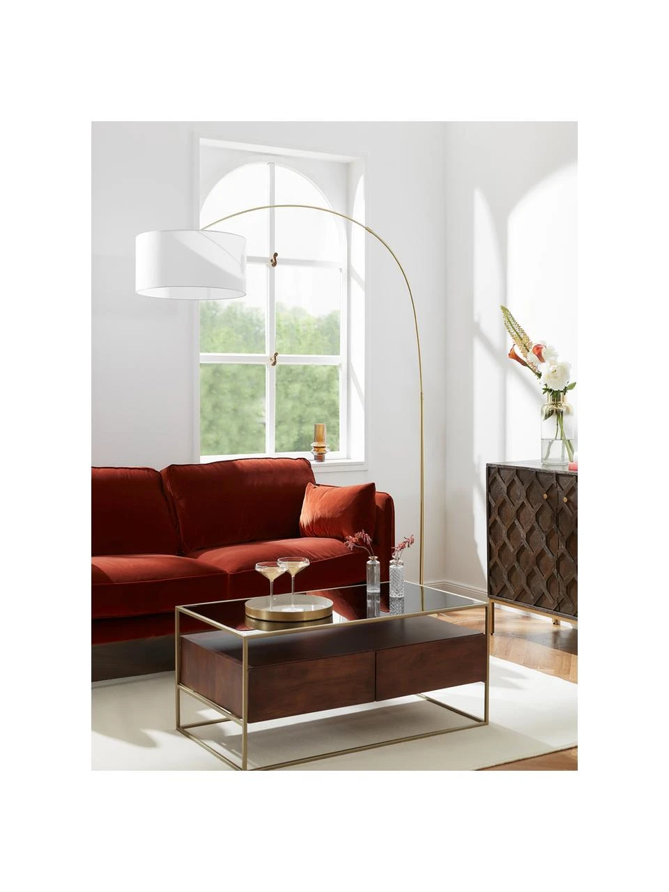 – Bogenleuchte mit Stoffschirm