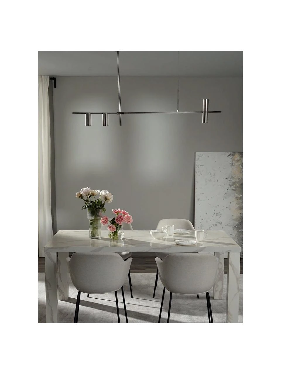 – Große Pendelleuchte in gebürstetem Silberfarben