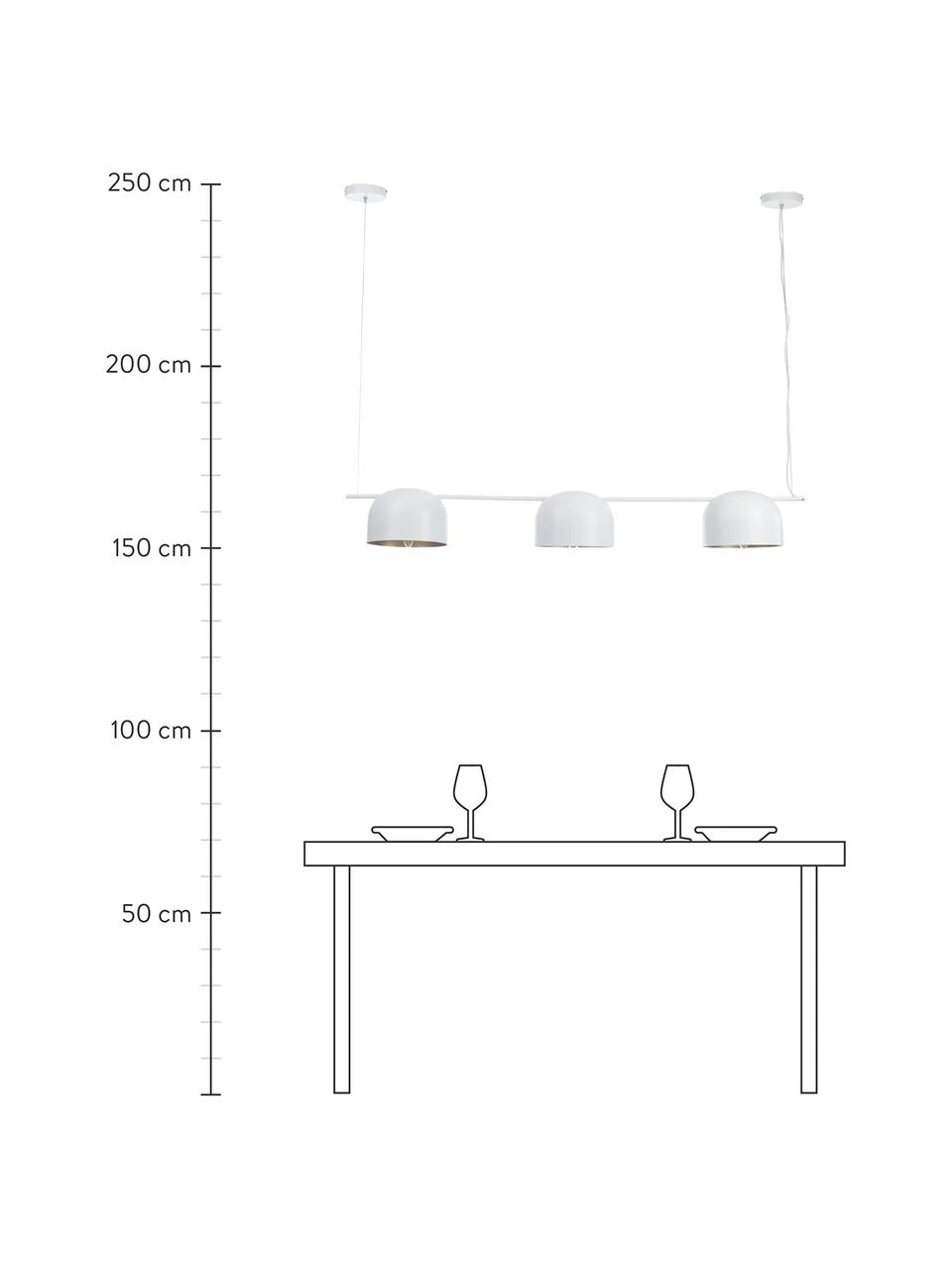 Abhängung von der Decke: höhenverstellbar min. 90 cm bis max. 150 cm