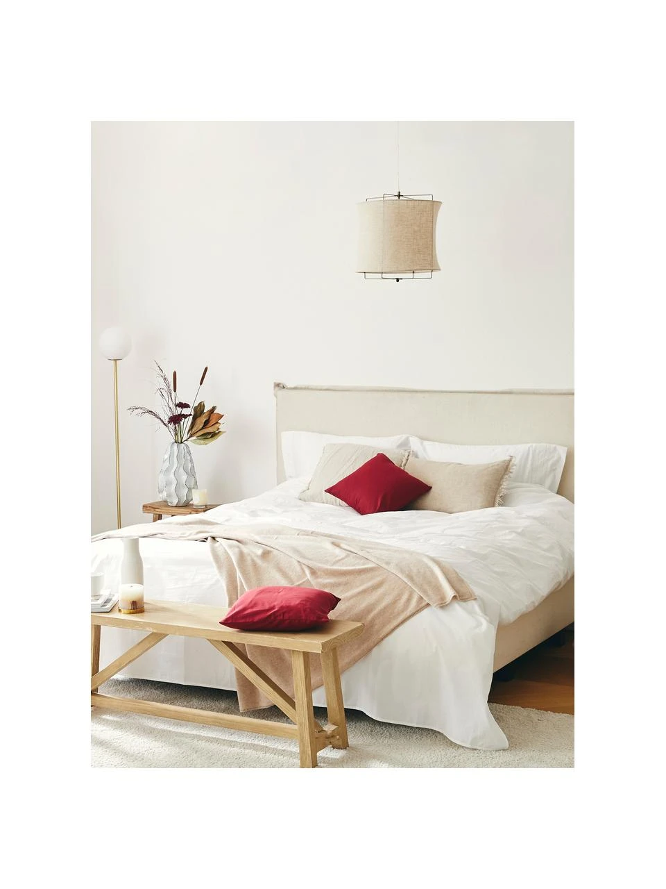 Die Pendelleuchte mit dem klangvollen Namen „Clouds“ lässt uns gedanklich ans Mittelmeer reisen. Mit ihrem modernen Design-Mix aus Skandi und Boho, dem natürlichen Leinenstoff und der gedeckten Farbwelt bringt sie den Look mallorquinischer Fincas in unser Zuhause. Licht an! So wird auch die feine Leinenstruktur sichtbar…