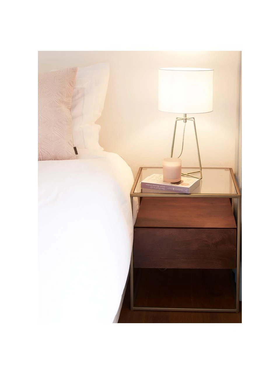 – Elegantes Design dank feinem Metallfuß in Gold